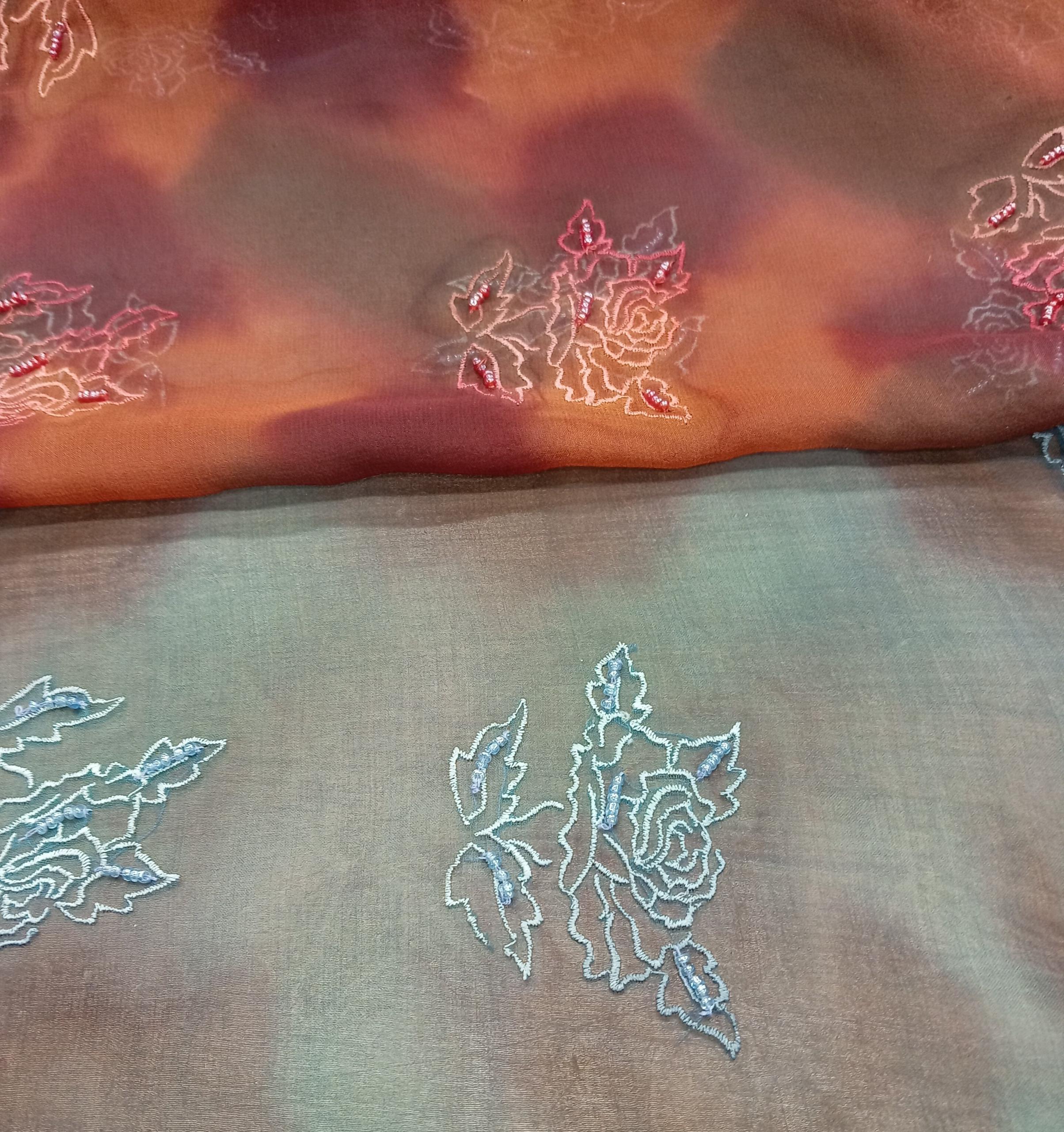 HomeBridal And FashionEmbroidered SilkEmbroidered Silk Georgette Embroidered Silk Georgette(PE92) Design Code PE92 Composition 100% Silk base Colour Range 2 cols Dimension 112 cms Care Instructions: Do not wash Do not Bleach Iron-Low Heat Dry Clean Only Embroidered Silk Georgette quantity Add to cart Related products Blush Pink Corded Border ( Lace GL 3 ) Buy now Beaded Black Tulle ( Lace GL 4 ) Buy now Black Lace + Flock Spots ( Lace GL 2 ) Buy now