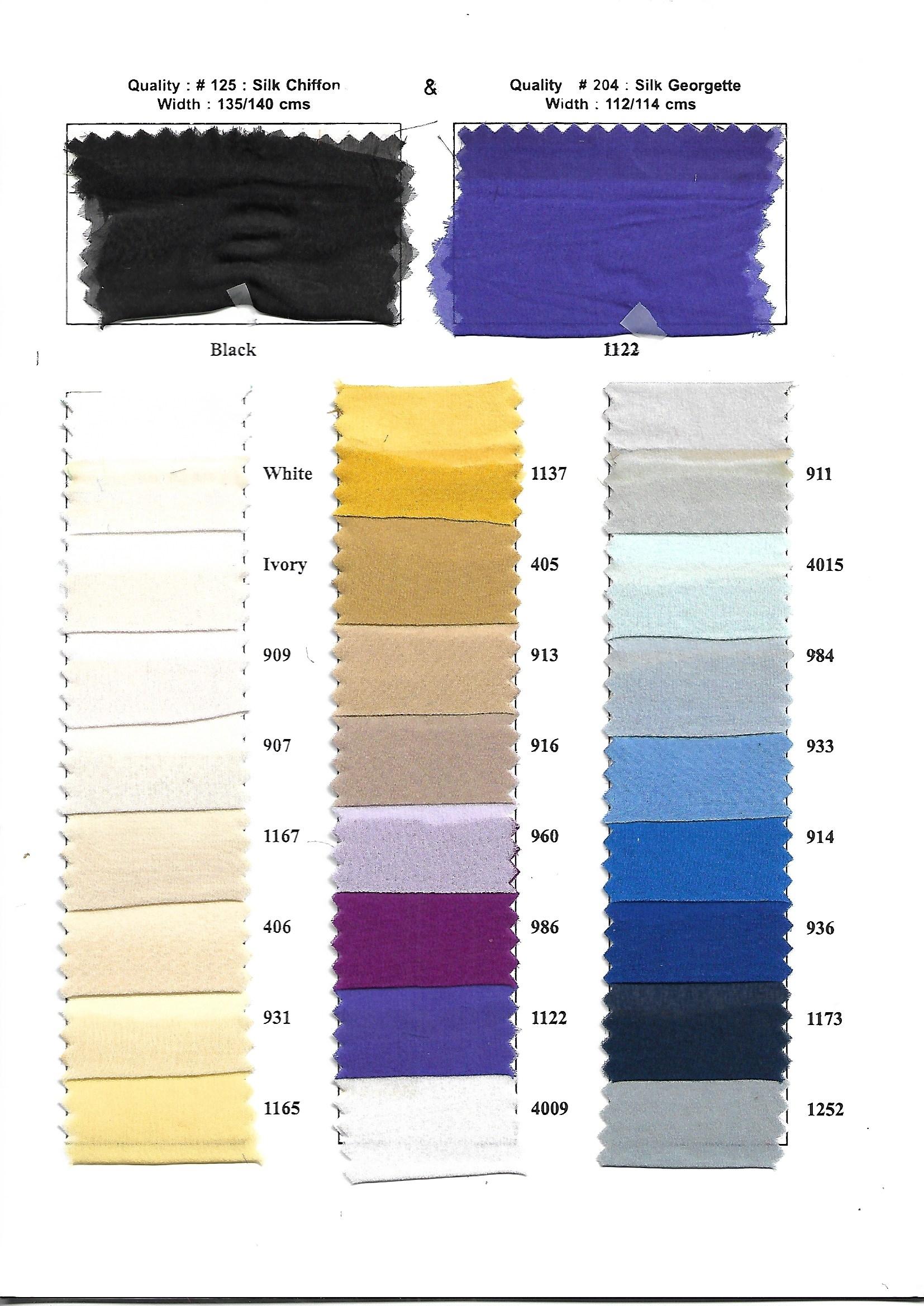 HomeBridal And FashionSilk Chiffon & GeorgetteSilk Georgette Silk Georgette(#204) Design Code #204 Composition Silk 100% Colour Range 50 cols Dimension 114 cms Weight 43gsm = 49g/m Care Instructions: Do not wash Do not Bleach Iron-Low Heat Dry Clean Only Silk Georgette quantity Add to cart Related products French Lace ( Lace BL 2 ) Buy now Corded Black Tulle ( Lace GL 6 ) Buy now Floral Multi colour ( Lace AM 21-8 cols ) Buy now